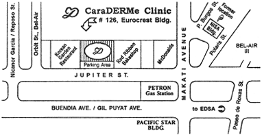 For more information or to schedule an appointment, call us at (632) 899-9677 / (632) 897-7685 / (632) 895-1877 / (0905) 222-2644 (Mobile) FAX: (632) 895-1877 email: dr_rose_caraderme@yahoo.com *OUR NEW CLINIC HOURS EFFECTIVE JANUARY 2006: Monday - Saturday |