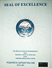 DIPLOMATE (BOARD CERTIFIED): Philippine Board of Dermatology